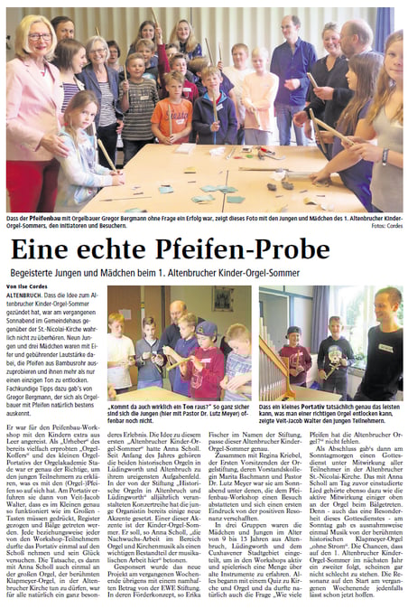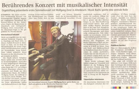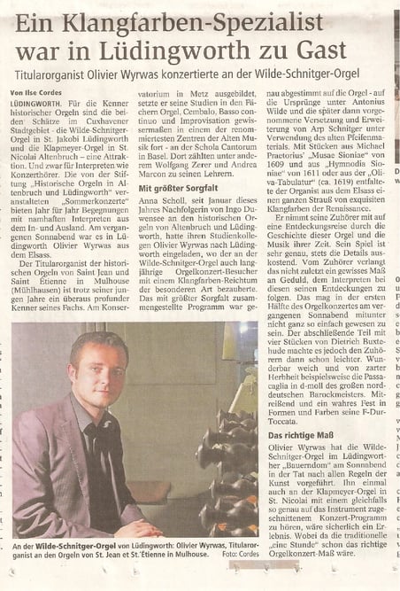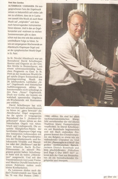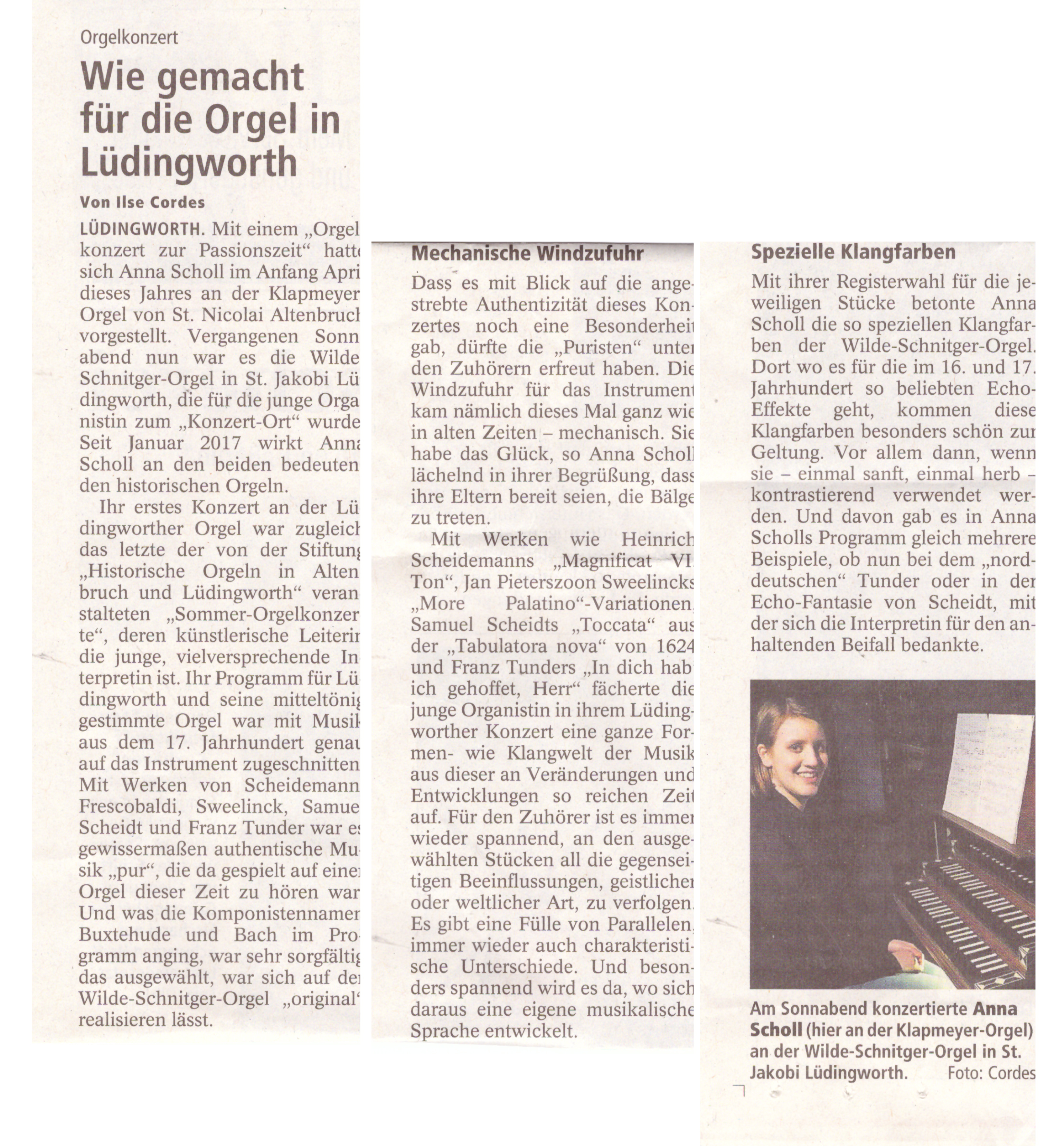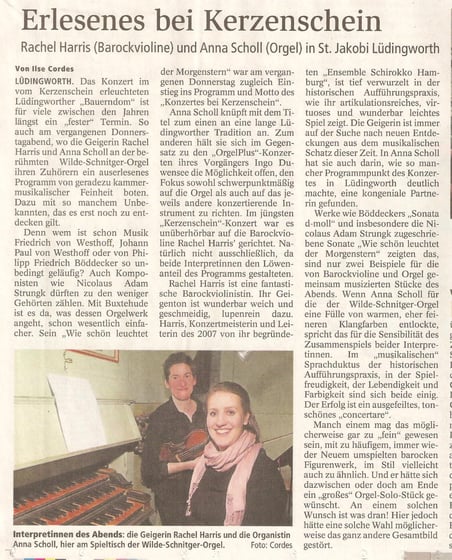 Ilse Cordes über das Orgelkonzert von Anna Scholl an der Klapmeyer-Orgel in Altenbruch,