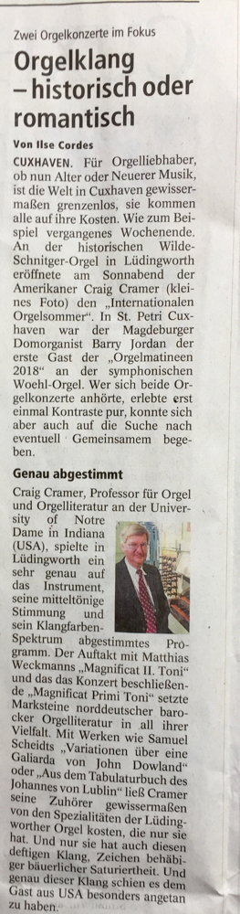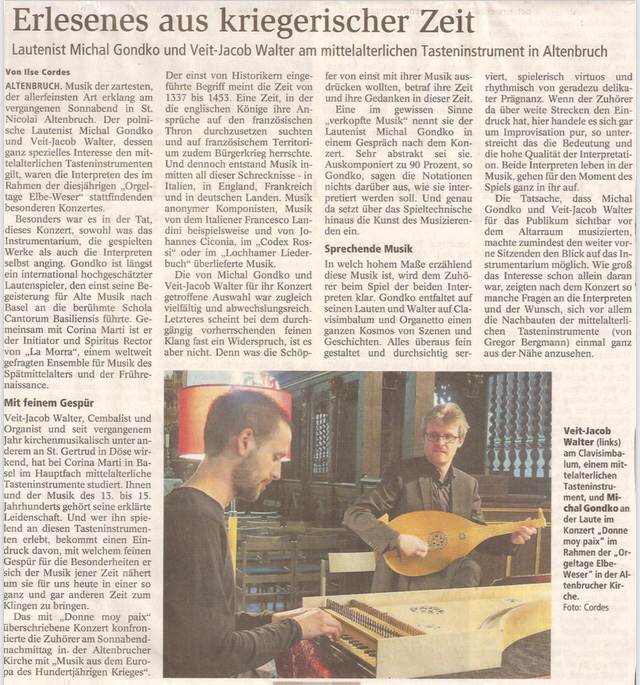 Konzert in Altenbruch im Rahmen der Orgeltage Elbe-Weser "Donne moy paix" am 26. Mai 2018:
