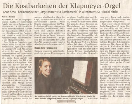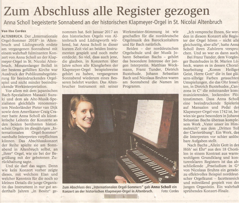 Anna Scholl an der Klapmeyer-Orgel Altenbruch am 24. März 2018: